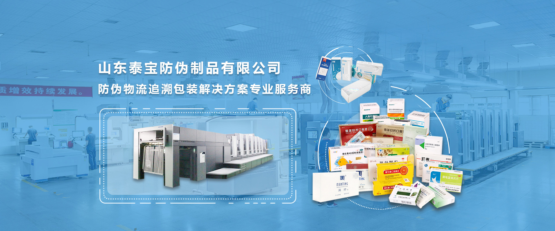 山東泰寶防偽制品有限公司成立于2001年,專業從事包裝盒研發、生產的高新技術企業。具備設計、數碼印刷、UV印刷、可變信息燙印、模切、糊盒在內的生產裝備及管控體系,為客戶提供整套盒碼一體智慧包裝解決方案。